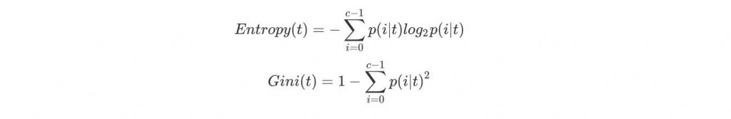 其中t代表给定的节点,i代表标签的任意分类, 代表标签分类i在节点t上所占的比例。注意,当使用信息熵时,sklearn实际计算的是基于信息熵的信息增益(Information Gain),即父节点的信息熵和子节点的信息熵之差。