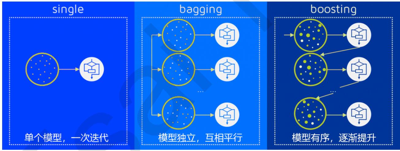 集成算法会考虑多个评估器的建模结果,汇总之后得到一个综合的结果,以此来获取比单个模型更好的回归或分类表现。