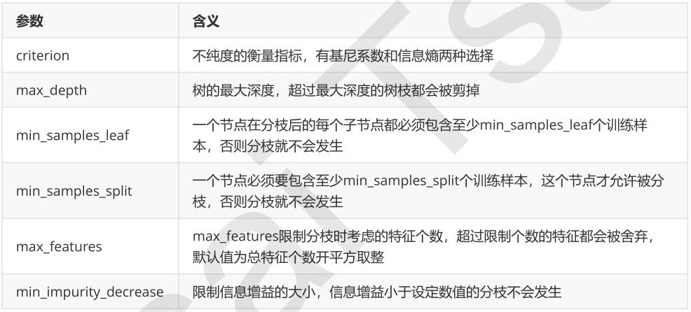决策树非常容易过拟合,这是说,它很容易在训练集上表现优秀,却在测试集上表现很糟糕。为了防止决策树的过拟合,我们要对决策树进行剪枝,sklearn中提供了大量的剪枝参数,我们一会儿会带大家复习一下。