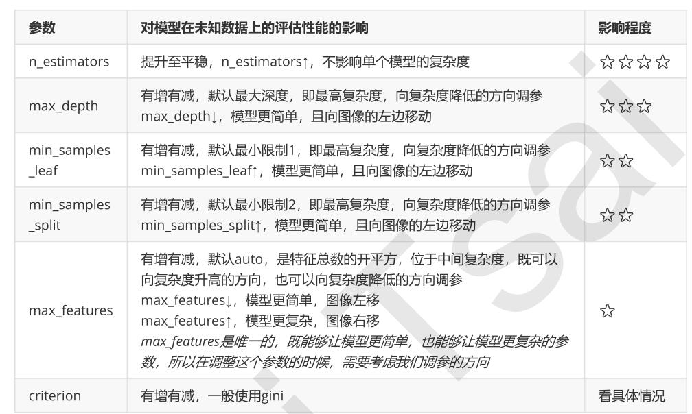 max_features是唯一一个即能够将模型往左(低方差高偏差)推,也能够将模型往右(高方差低偏差)推的参数。我