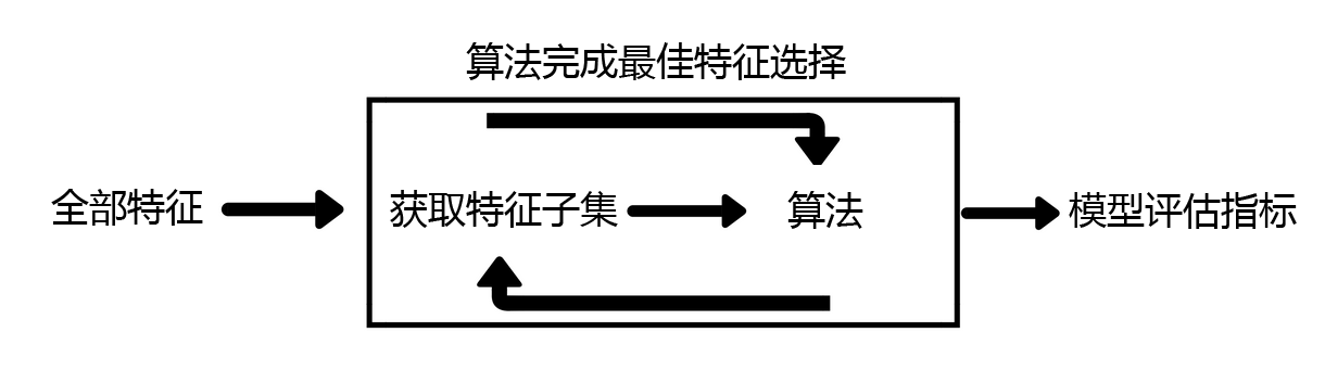 注意,在这个图中的“算法”,指的不是我们最终用来导入数据的分类或回归算法(即不是随机森林),而是专业的数据挖掘算法,即我们的目标函数。这些数据挖掘算法的核心功能就是选取最佳特征子集。