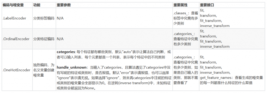 preprocessing.LabelEncoder:标签专用,能够将分类转换为分类数值