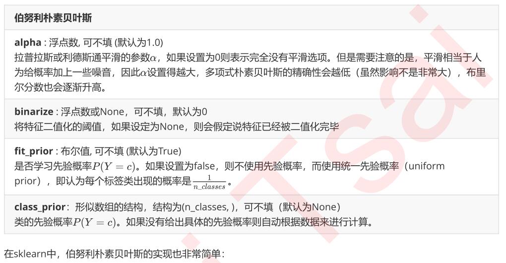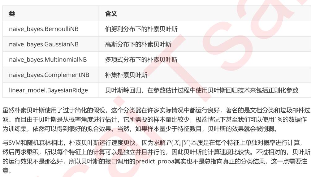 Sklearn基于这些分布以及这些分布上的概率估计的改进,为我们提供了四个朴素贝叶斯的分类器。