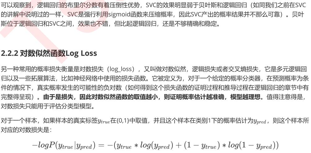 在许多分类算法应用中,特征和标签之间的关系并非是决定性的。比如说,我们想预测一个人究竟是否会在泰坦尼克号海难中生存下来,那我们可以建一棵决策树来学习我们的训练集。在训练中,其中一个人的特征为:30岁,男,普通舱,他最后在泰坦尼克号海难中去世了。当我们测试的时候,我们发现有另一个人的特征也为:30岁,男,普通舱。基于在训练集中的学习,我们的决策树必然会给这个人打上标签:去世。然而这个人的真实情况一定是去世了吗?并非如此。也许这个人是心脏病患者,得到了上救生艇的优先权。又有可能,这个人就是挤上了救生艇,活了下来。对分类算法来说,基于训练的经验,这个人“很有可能”是没有活下来,但算法永远也无法确定”这个人一定没有活下来“。即便这个人最后真的没有活下来,算法也无法确定基于训练数据给出的判断,是否真的解释了这个人没有存活下来的真实情况。这就是说,算法得出的结论,永远不是100%确定的,更多的是判断出了一种“样本的标签更可能是某类的可能性”,而非一种“确定”。我们通过某些规定,比如说,在决策树的叶子节点上占比较多的标签,就是叶子节点上所有样本的标签,来强行让算法为我们返回一个固定结果。但许多时候,我们也希望能够理解算法判断出的可能性本身。