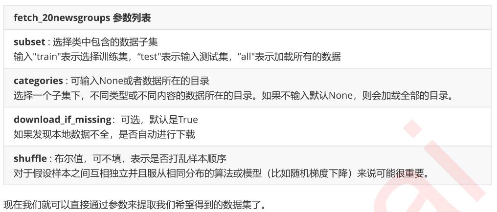 #因此我们需要来看看我们的类fetch_20newsgroups都有什么样的参数可以帮助我们
