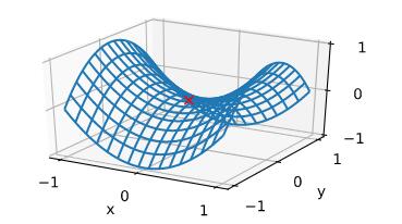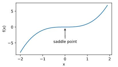 fig.axes.annotate('saddle point', xy=(0, -0.2), xytext=(-0.52, -5.0),