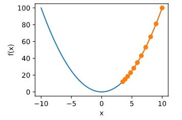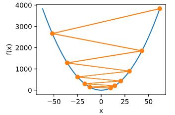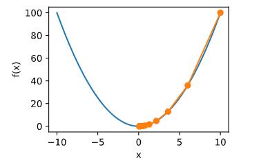 x -= eta * 2 * x  # f(x) = x * x的导数为f'(x) = 2 * x