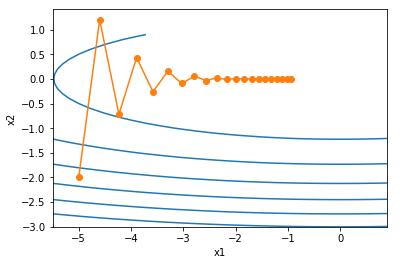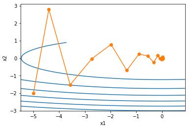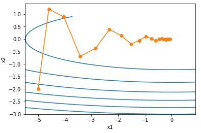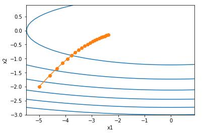 epoch 20, x1 -0.047150, x2 -0.075628