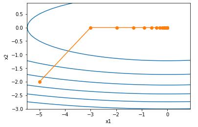 show_trace_2d(f_2d, train_2d(gd_2d))
