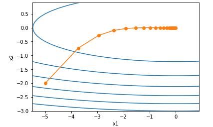 def train_2d(trainer):  # 本函数将保存在d2lzh_pytorch包中方便以后使用