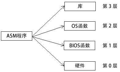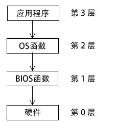 • 第 1 层:调用 BIOS 函数来控制设备具体特性,如颜色、图形、声音、键盘输入和底层磁盘 I/O。