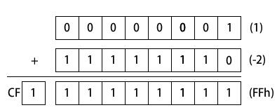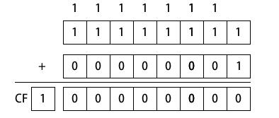 同样,在下面的例子中,由于 AL 中的进位不会进入 RAX 的其他位,所以执行 ADD 指令后,RAX 等于 0: