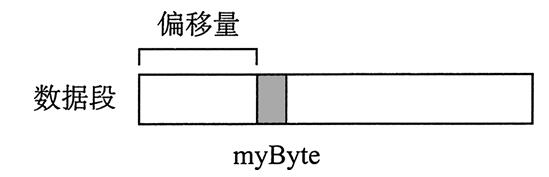 变量名引用的是数据段内的偏移量。例如,如下变量 varl 的声明表示,该变量的大小类型为字节,值为十六进制的10:
