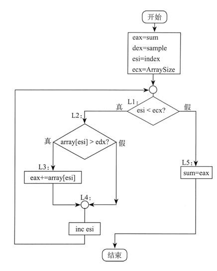 下面用 .WHILE 和 .IF 伪指令实现这段伪代码。由于 op1、op2 和 op3 是变量,为了避免任何指令出现两个内存操作数,它们被送入寄存器: