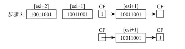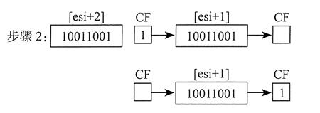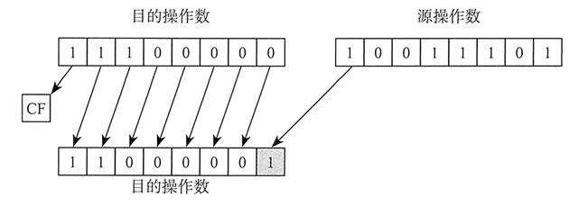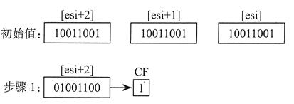 位循环不会丢弃位。从数的一端循环出去的位会出现在该数的另一端。在下例中,请注意最高位是如何复制到进位标志位和位 0 的: