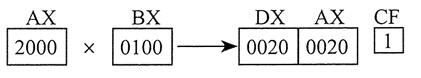 32 位模式下,MUL 执行非压缩十进制乘法,AAM(乘法后的 ASCII 调整)指令转换由其产生的二进制乘积。乘法只能使用非压缩十进制数。