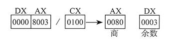 下面的例子把非压缩 0307h 转换为二进制数,然后除以 5。DIV 指令在 AL 中生成商 07h,在 AH 中生成余数 02h: