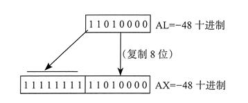 设 AX 中为有符号数,现将其符号位扩展到 EAX。首先把 EAX 左移 16 位,再将其算术右移 16 位: