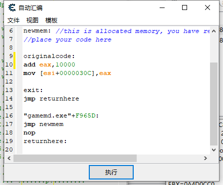 所以我们在前面加上add eax+10000 每次执行mov前都加上10000就实现了效果,点击执行就ok啦