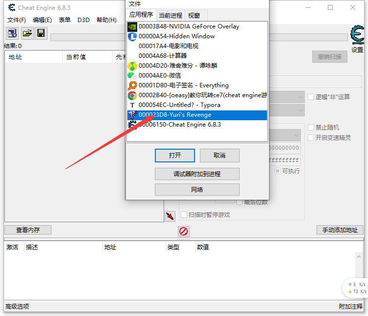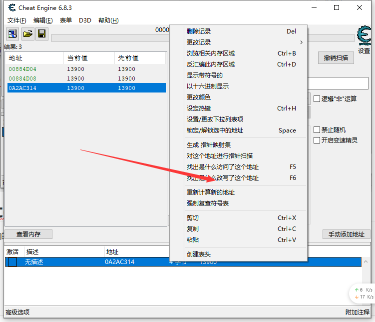 此时会启动CE的调试器 我们还需要跑一次 这一次程序会检测汇编中的哪一句语言改变了地址中的这个值