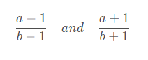 $$ \frac{a-1}{b-1} \quad and \quad {a+1\over b+1} $$