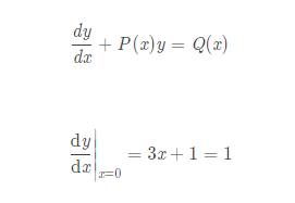 $$\frac{dy}{dx}+P(x)y=Q(x)$$