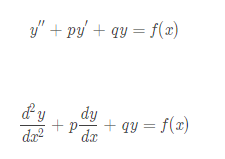 $$\frac{d^2y}{dx^2}+p\frac{dy}{dx}+qy=f(x)$$