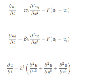 \frac{\partial u}{\partial t}= h^2 \left( \frac{\partial^2 u}{\partial x^2} +\frac{\partial^2 u}{\partial y^2}+ \frac{\partial^2 u}{\partial z^2}\right)