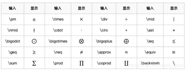 拉丁字母、阿拉伯数字和 +-*/= 运算符均可以直接输入获得,命令\cdot表示乘法的圆点,命令\neq表示不等号,命令\equiv表示恒等于,命令\bmod表示取模