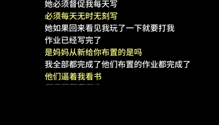 哪怕作业他全部完成了,妈妈还要逼着他看书,无时无刻不在逼着他学习。