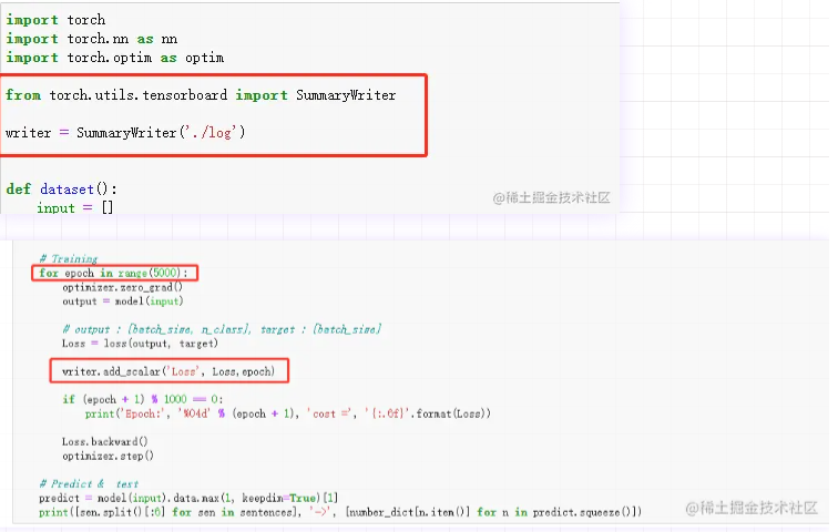 在代码中导入tensorboard