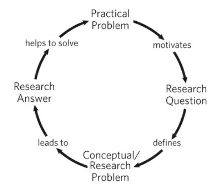 • 然后就会有动机(motivates)去找到一些研究的问题(值得research的问题,通常是一些开放性的你不可能立马就知道答案的或者别人觉得没有很容易就解决的,其中就一些有价值的问题);