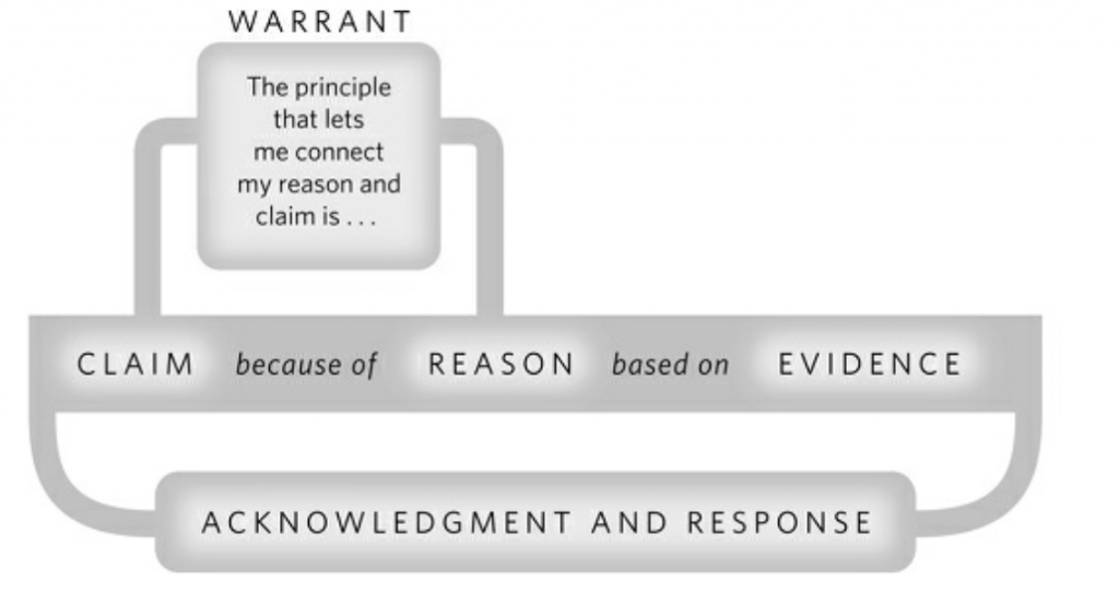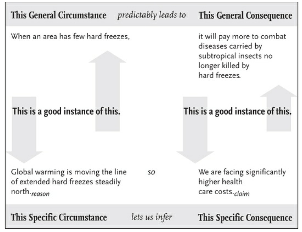 • 当原因和论点之间隔得比较远的时候,需要给出一些推理的保证,来使得读者能清楚的认识到我们的原因和论点是怎么样联系起来的。