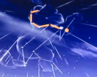 发源于上面的反问号,它的形成与彗星运动有关。1866年发现坦普尔-特塔尔彗星,并确定其轨道,狮子座流星雨就是他上演的好戏。