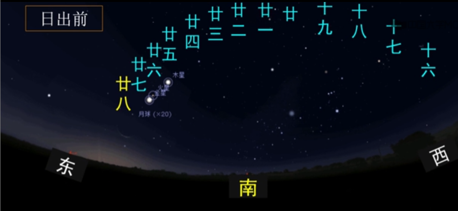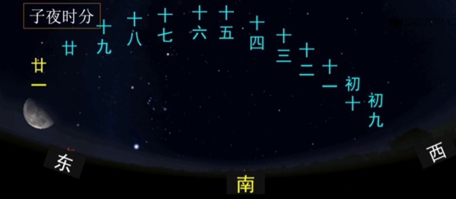 上(半月)上(半夜)西(半天空)西(边亮) 下(半月)下(半夜)东(半天空)东(边亮)