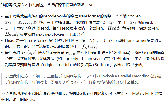 至此,我们完整描述了Blockwise Parallel Decoding 的核心内容,该方法主要是为了做推理阶段的并行加速而设计的。虽然命名上没有遵循MPT类,但后面一些演进的方法比如Speculative Sample和下面要介绍的Meta’s MTP等,都有该方法设计的影子。