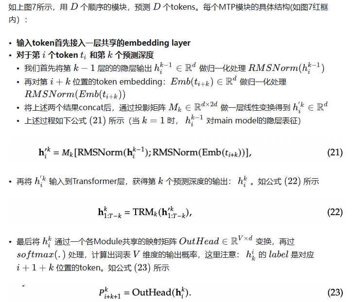 我们先结合Deepseek V3论文中的公式详细讲解下MTP的实现。