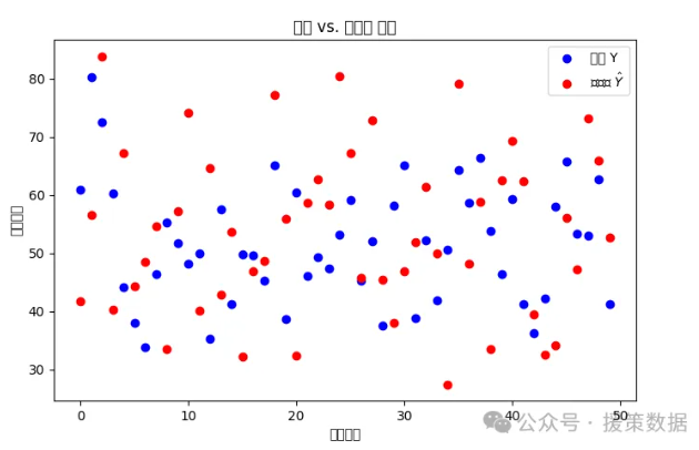• 用 蓝色点 表示观察到的Y(真实值)。