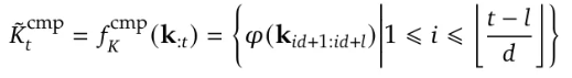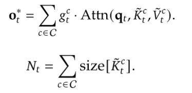 这种压缩信息,粒度比较粗,论文中写作 coarse granularity。它实际上就是把若干个 block,用 MLP 压缩一下,拼接起来,形成一个短小的 k 和 v,去和对应的 q 做碰撞。文中公式是这样。