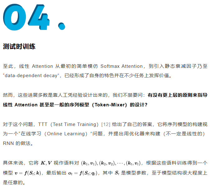 在中文圈,笔者应该算是比较早关注线性 Attention 的了,在 2020 年写首篇相关文章线性Attention的探索:Attention必须有个Softmax吗?时,大家主要讨论的还是 BERT 相关的 Softmax Attention。