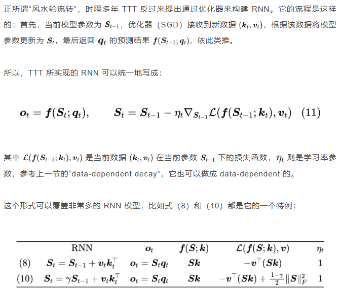 TTT 原文则致力于探索 mini-batch 下的非线性 RNN,后来的 Titans [14] 则给 TTT 的 SGD 加上了动量,再后面《Test-Time Training Done Right》[15] 则探索了 large-batch 的 TTT 用法,还探索了“TTT + Muon”的组合。
