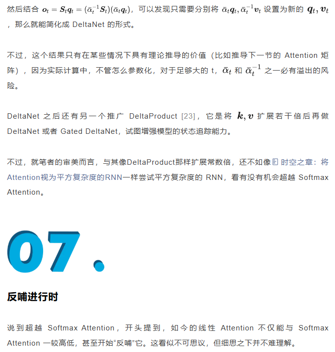在这样的新背景下,线性 Attention 越来越体现出竞争力,甚至出现了“反哺”Softmax Attention 的迹象。
