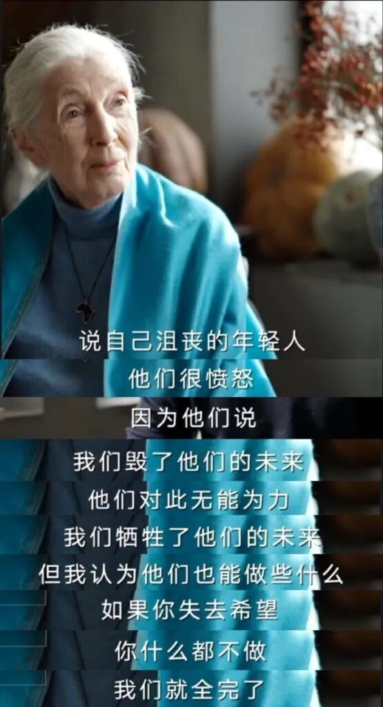 对很多人来说,“希望”这个词显得有些宏大。古道尔和很多年轻人交流,发现不少人对未来失去了希望。这种悲观,有其土壤。