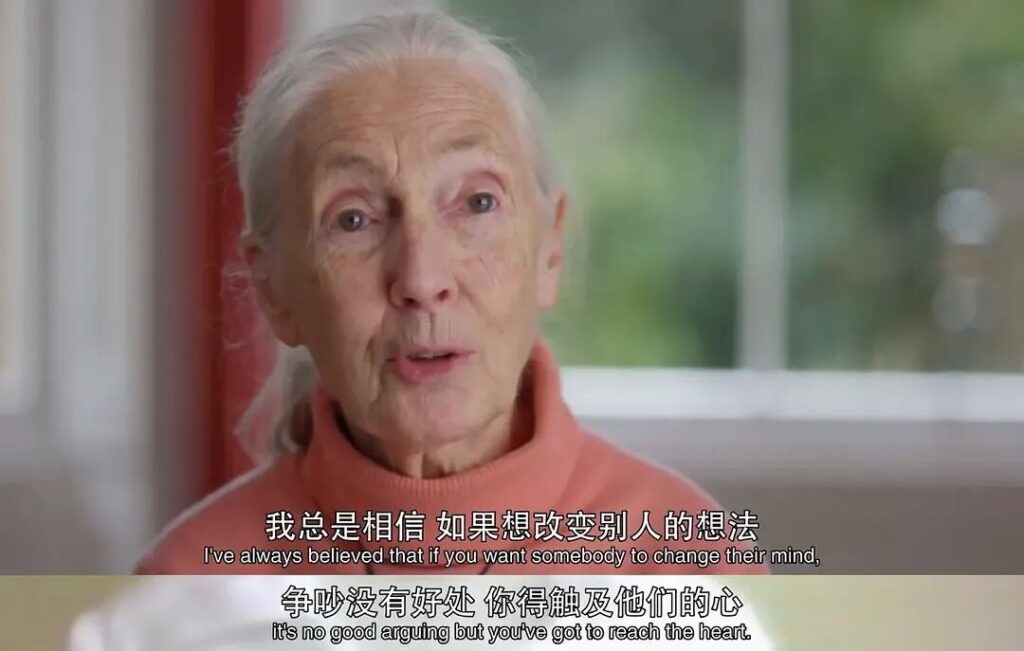 在一场又一场的争论中,她窥见了人类的傲慢。“比如他们说,我不该给黑猩猩起名字,它们应该只有编号。它们也不可能有个性、情感,那些理应是人类特有的。”