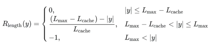 因此 DAPO 做了个动态的长度奖惩机制,让模型训练有个缓存,可以意识到是长度带来的惩罚而不是逻辑内容错误带来的惩罚,具体动态惩罚函数: