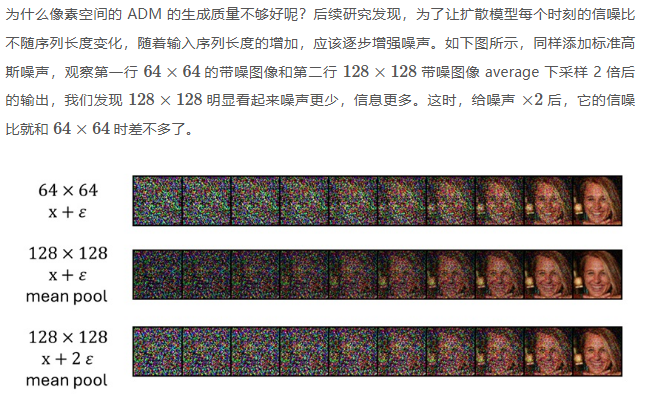 LDM 虽然大大提升了扩散模型生成高分辨率图像的效率,但它并没有解决用扩散模型生成长序列这件事——因为 LDM 是通过减少潜图像序列的长度来提升效率的。但当输入序列变长,比如要生成视频时,我们仍然绕不过长序列生成这个问题。因此,继续研究像素空间的扩散模型仍有价值。