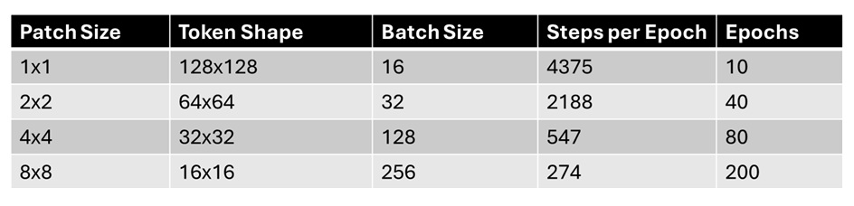 为了进一步验证我的结论,我做了 p = [1,2, 4, 8] 在 baseline 和 JiT 配置下的 8 个实验。各个实验的 Batch Size 及训练量如下所示: