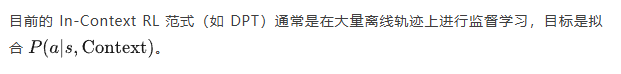 在 In-Context RL 的研究热潮中,往往存在一种惯性思维,认为只要把 Transformer 做大,把上下文窗口拉长,模型就能像 AD (Algorithm Distillation) 或 DPT (Decision-Pretrained Transformer) 那样“顿悟”出最优策略。