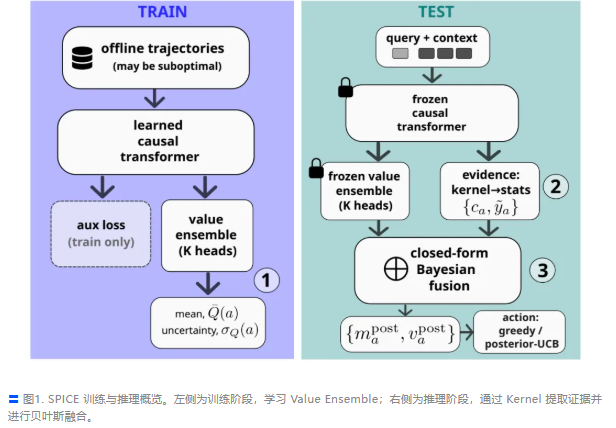 SPICE 的全称是 Shaping Policies In-Context with Ensemble prior。它的架构并不复杂,核心在于如何优雅地处理预训练知识和当前上下文之间的关系。
