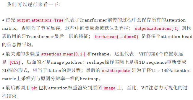 下面是一段基于Hugging Face transformers库里的标准化可视化代码,展示了从加载模型、预处理图片、提取attention weights到最终可视化的完整流程。